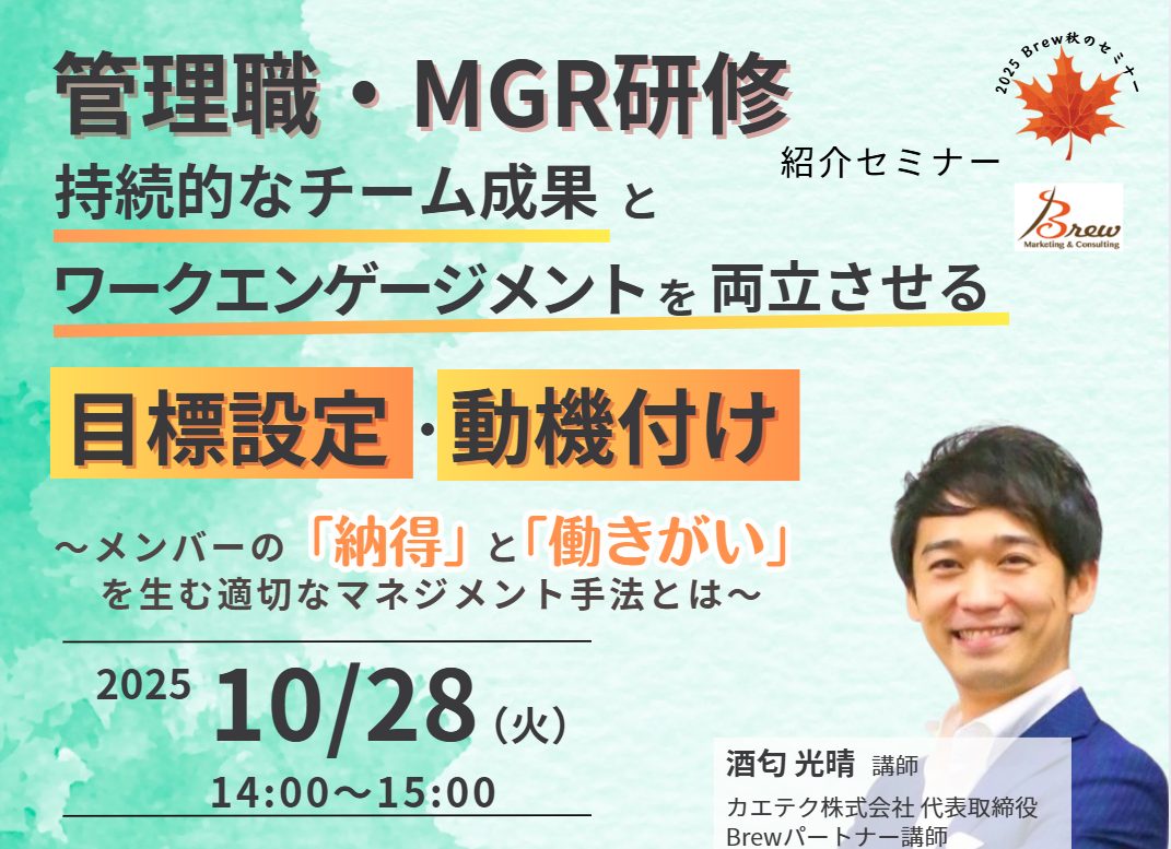 管理職・MGR研修~持続的な成果とワークエンゲージメントを両立させる 「目標設定」「動機付け」